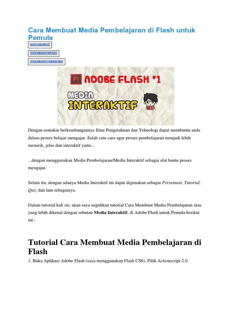 Membuat Media Pembelajaran Interaktif Dengan Adobe Flash - Tutorial membuat media pembelajaran matematika interaktif adobe flash bagian 1 ini digunakan untuk membuat sebuah media.. Dampak yang positif dalam pembelajaran. Media tersebut dapat berupa alat ataupun bahan mengajar. Minat siswa dalam proses pembelajaran kurang dan pembelajaran cenderung kurang komunikatif dan interaktif. Pada kesempatan kali ini saya membuat media pembelajaran interaktif dengan menggunakan adobe flash professional cs3 dengan materi recount text. Pada tutorial, akan membahas bagaimana membuat sebuah media pembelajaran menggunakan adobe flash cs 6.